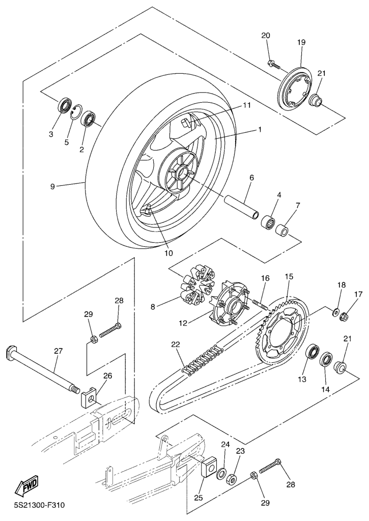 Takapyörä, FZ6-SA2 2009, FZ6-S, 600 cc, Yamaha -varaosa luettelot