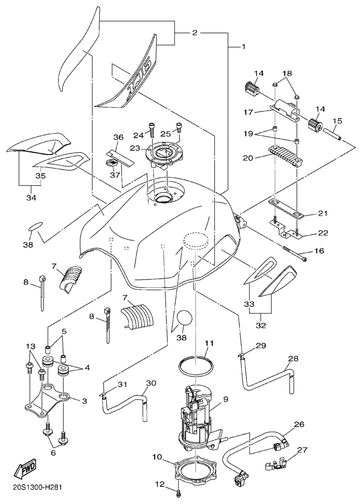 Polttoainesäiliö, XJ6N 2009, XJ6N, 600 cc, Yamaha -varaosa luettelot