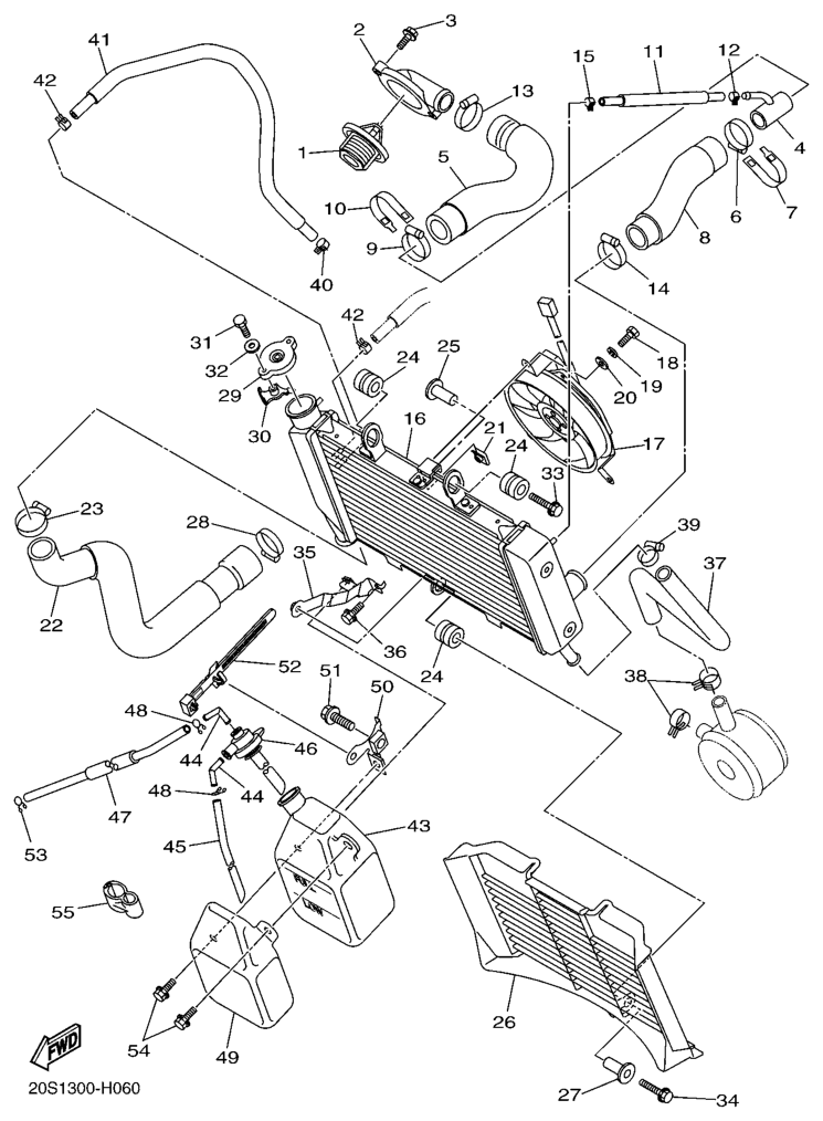 Jäähdytin ja letkut, XJ6N 2010, XJ6N, 600 cc, Yamaha -varaosa luettelot