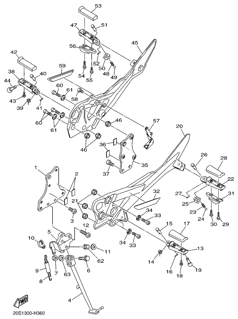 Seisontatuki ja jalkatapit, XJ6N 2010, XJ6N, 600 cc, Yamaha -varaosa luettelot
