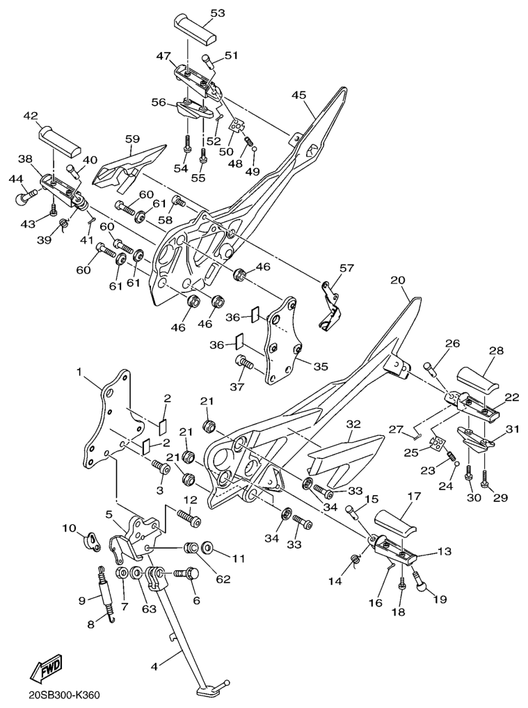 Seisontatuki ja jalkatapit, XJ6N 2013, XJ6N, 600 cc, Yamaha -varaosa luettelot
