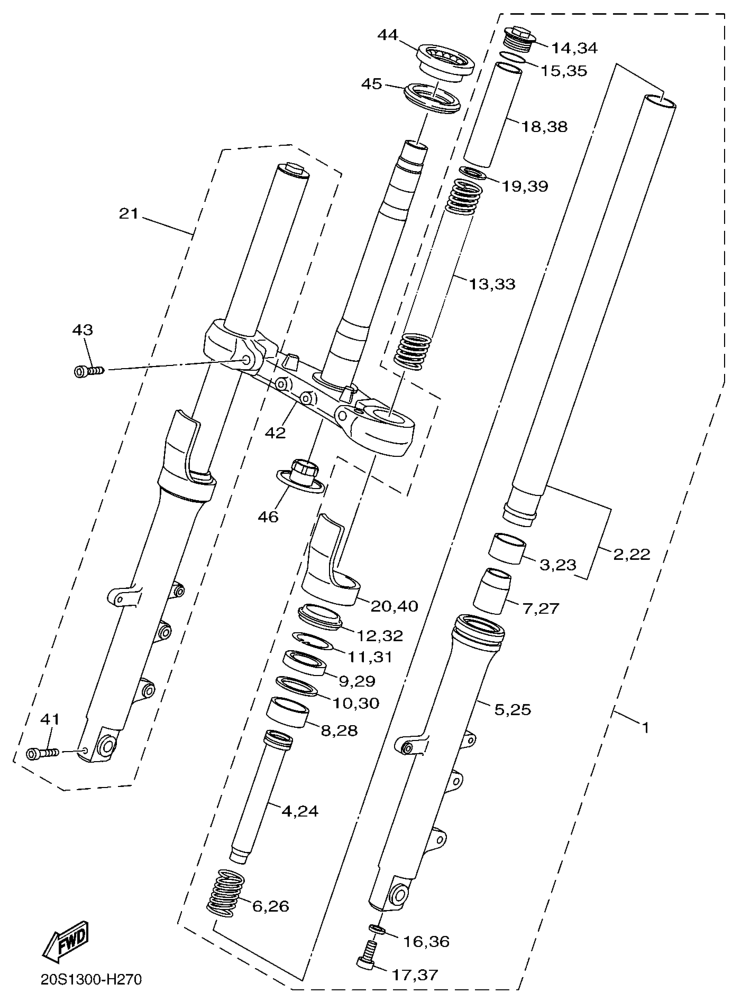 Etuhaarukka, XJ6N 2014, XJ6N, 600 cc, Yamaha -varaosa luettelot