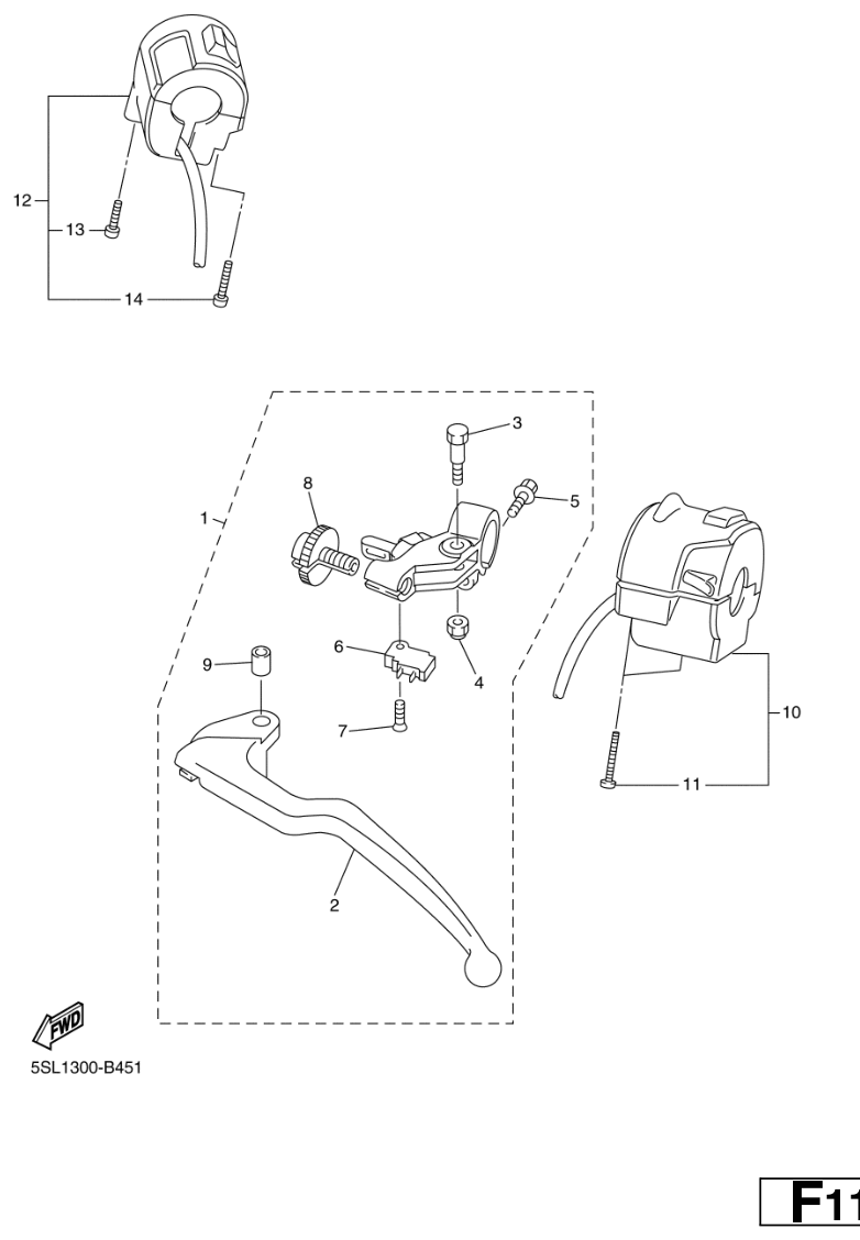 Ohjaustangon katkaisija ja vivut, YZF-R6 2005, YZF-R6, 600 cc, Yamaha -varaosa luettelot