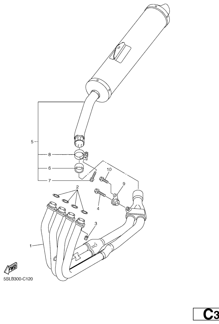 Pakoputkisto, YZF-R6 2005, YZF-R6, 600 cc, Yamaha -varaosa luettelot