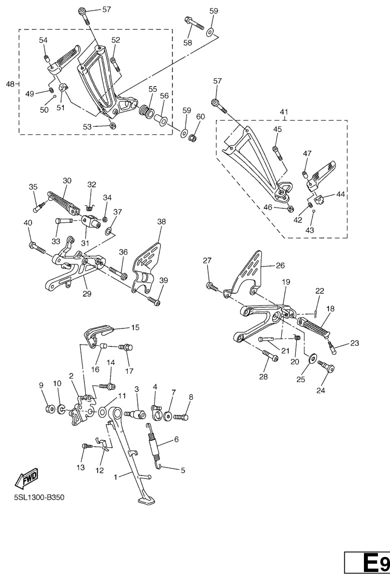 Seisontatuki ja jalkatapit, YZF-R6 2005, YZF-R6, 600 cc, Yamaha -varaosa luettelot