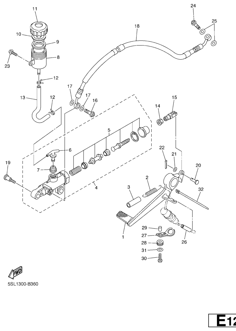 Takajarrun pääsylinteri, YZF-R6 2005, YZF-R6, 600 cc, Yamaha -varaosa luettelot