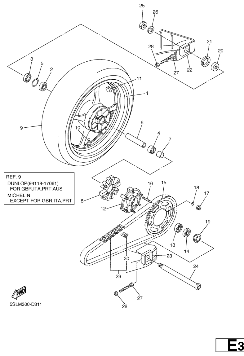 Takapyörä, YZF-R6 2005, YZF-R6, 600 cc, Yamaha -varaosa luettelot