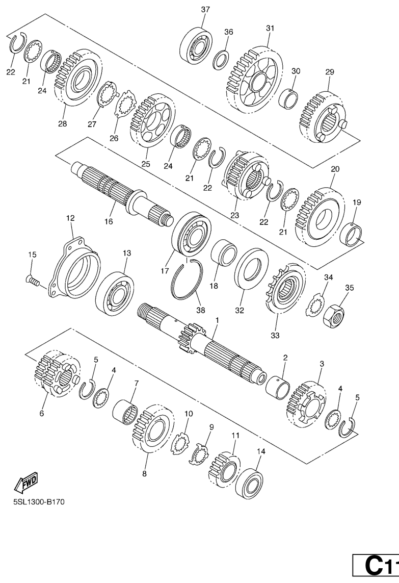 Vaihteisto, YZF-R6 2005, YZF-R6, 600 cc, Yamaha -varaosa luettelot