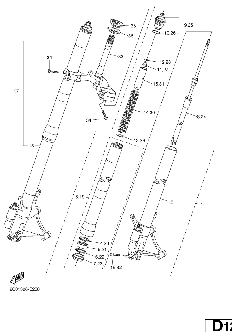 Etuhaarukka, YZF-R6 2006, YZF-R6, 600 cc, Yamaha -varaosa luettelot