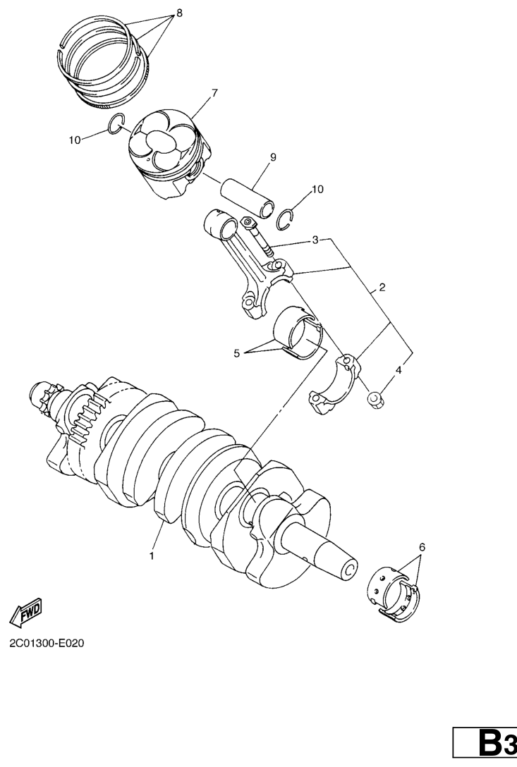 Kampiakseli ja mäntä, YZF-R6 2006, YZF-R6, 600 cc, Yamaha -varaosa luettelot