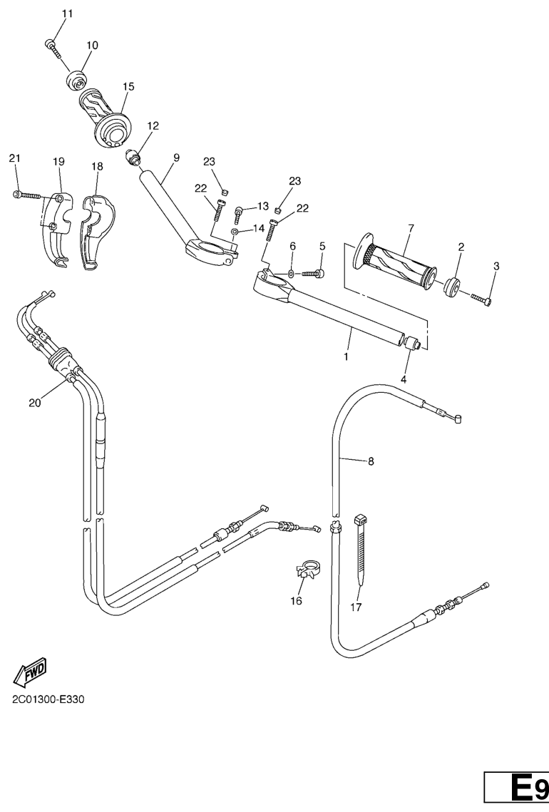 Ohjaustanko ja vaijerit, YZF-R6 2007, YZF-R6, 600 cc, Yamaha -varaosa luettelot
