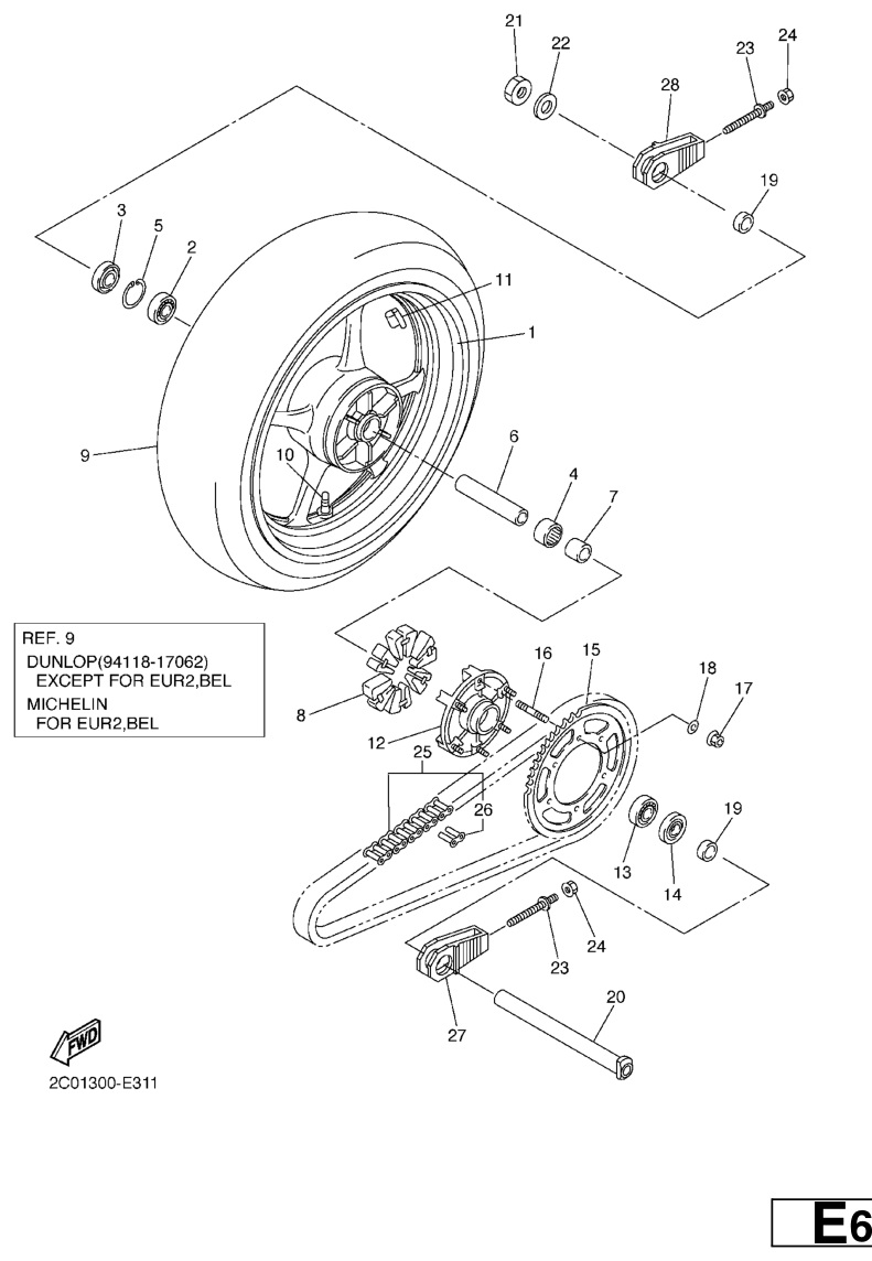 Takapyörä, YZF-R6 2007, YZF-R6, 600 cc, Yamaha -varaosa luettelot
