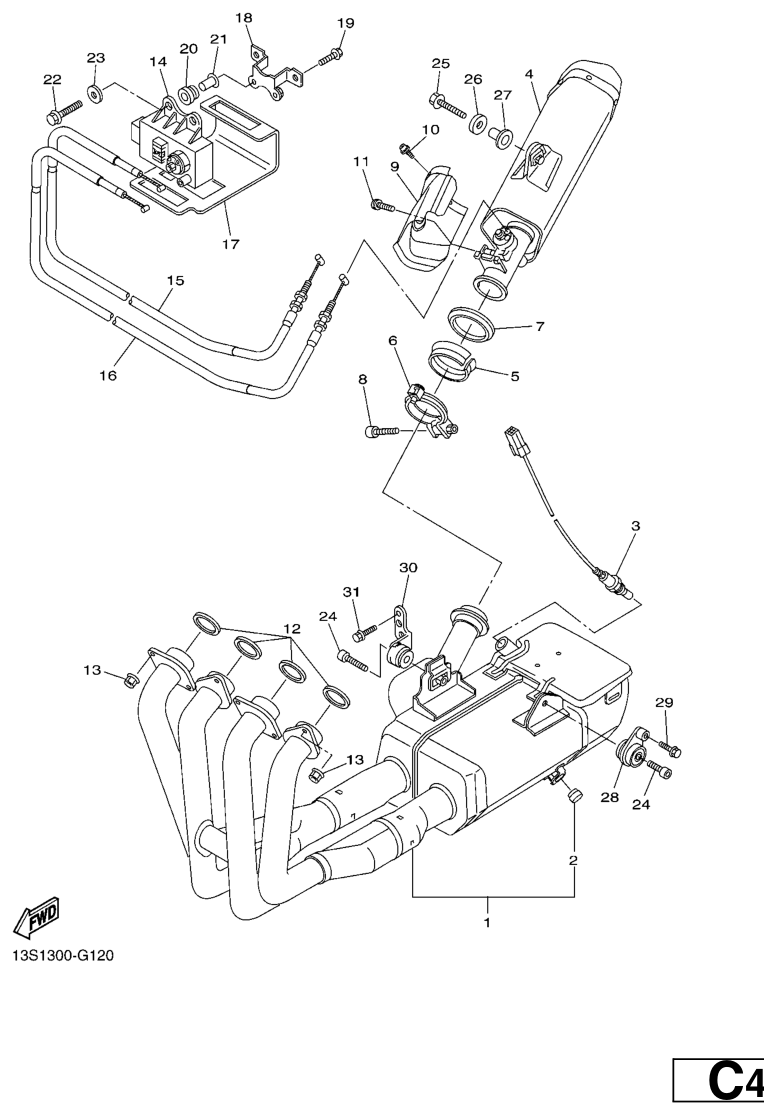 Pakoputkisto, YZF-R6 2008, YZF-R6, 600 cc, Yamaha -varaosa luettelot
