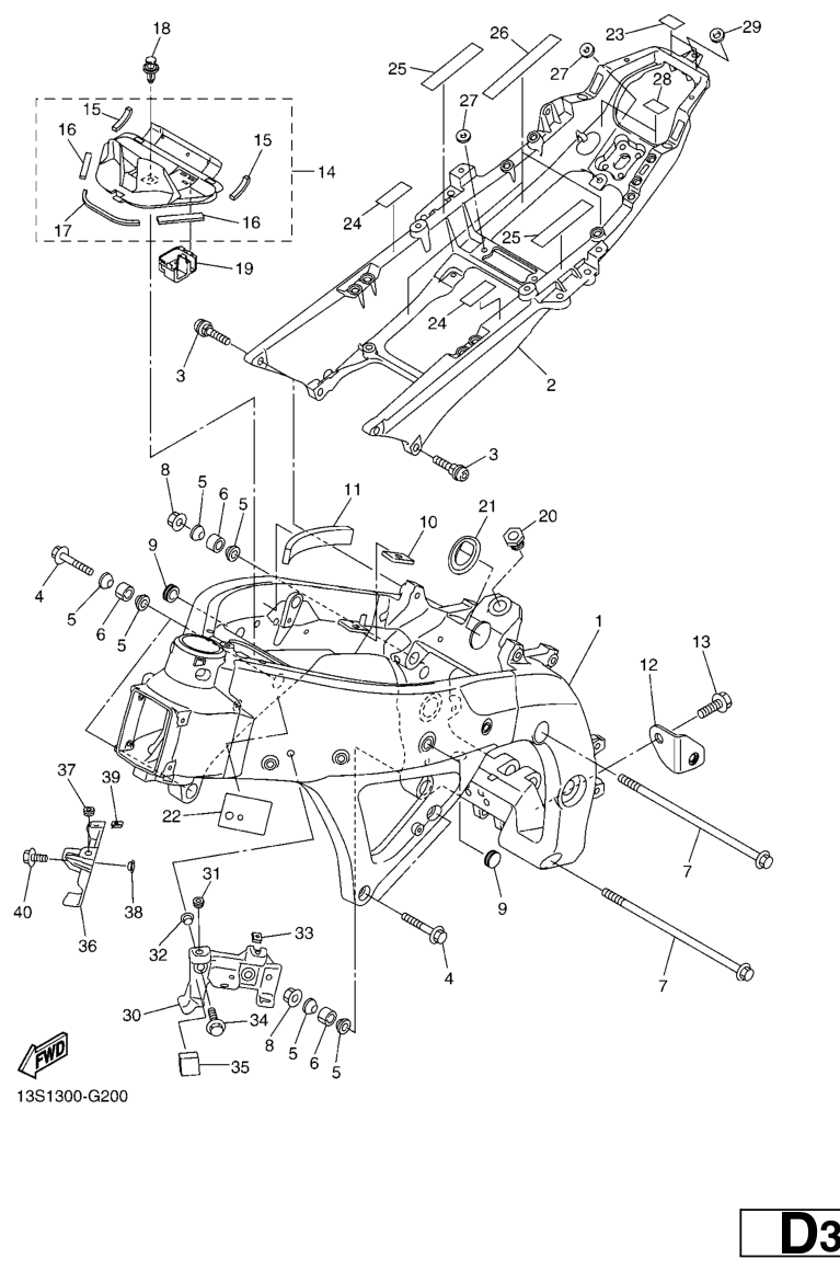 Runko, YZF-R6 2008, YZF-R6, 600 cc, Yamaha -varaosa luettelot