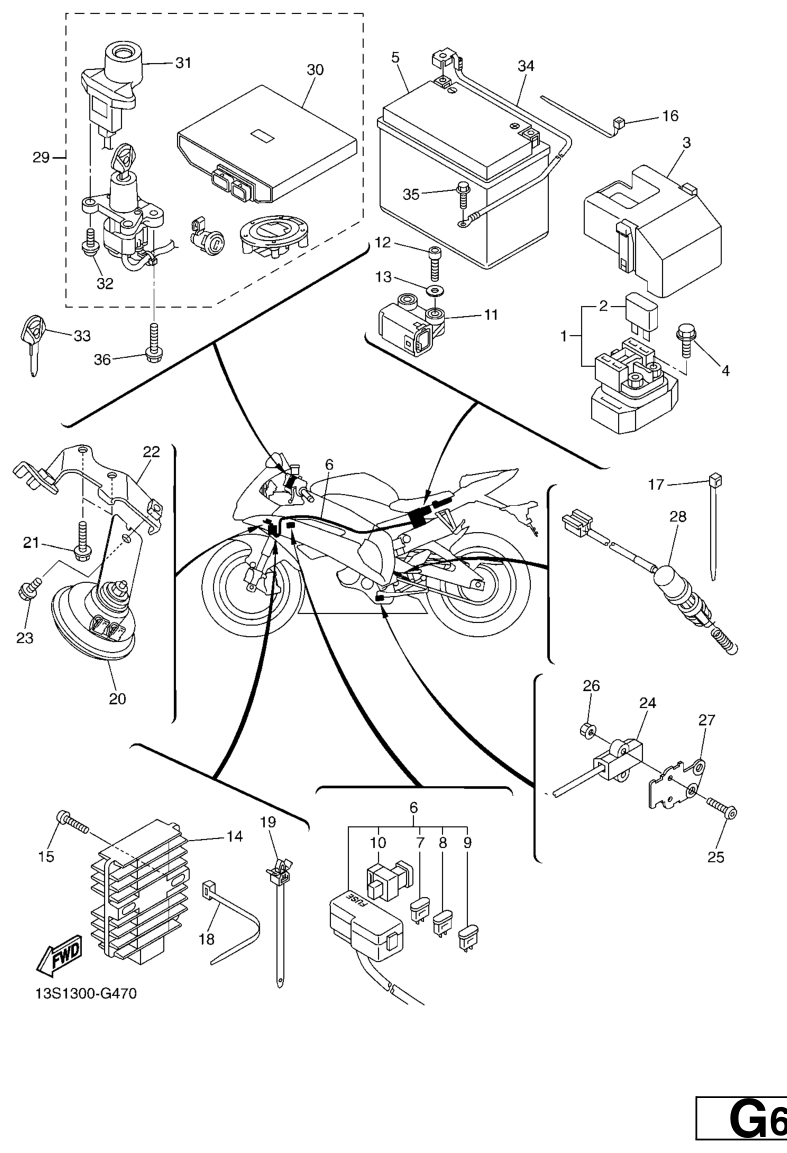Sähköjestelmä 2, YZF-R6 2008, YZF-R6, 600 cc, Yamaha -varaosa luettelot