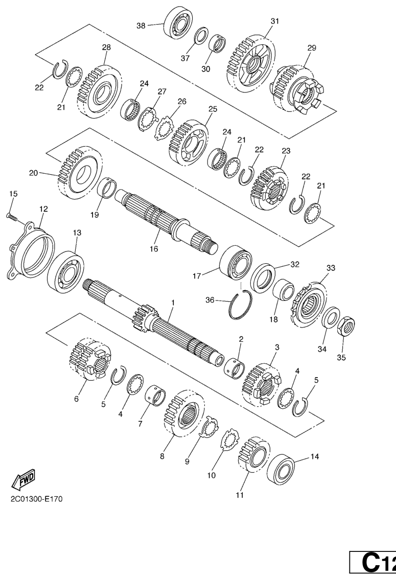 Vaihteisto, YZF-R6 2008, YZF-R6, 600 cc, Yamaha -varaosa luettelot