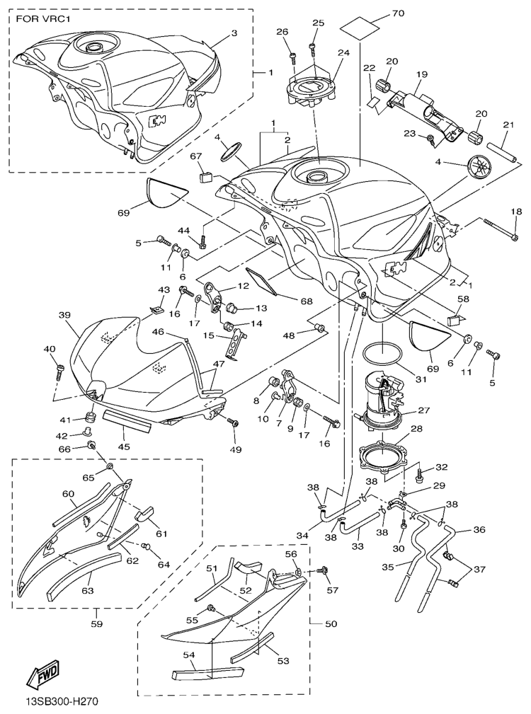 Fuel tank, YZF-R6 2009, YZF-R6, 600 cc, Yamaha -varaosa luettelot
