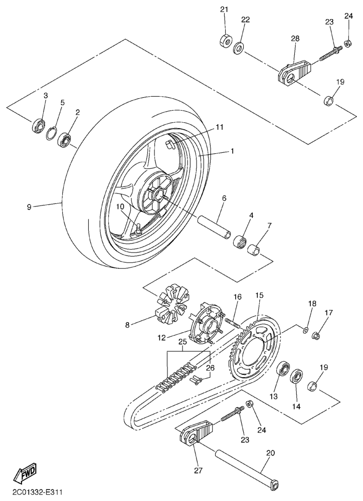 Takapyörä, YZF-R6 2009, YZF-R6, 600 cc, Yamaha -varaosa luettelot
