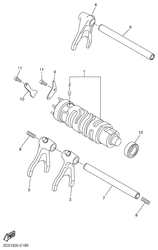 Vaihderumpu ja haarukat, YZF-R6 2009, YZF-R6, 600 cc, Yamaha -varaosa luettelot