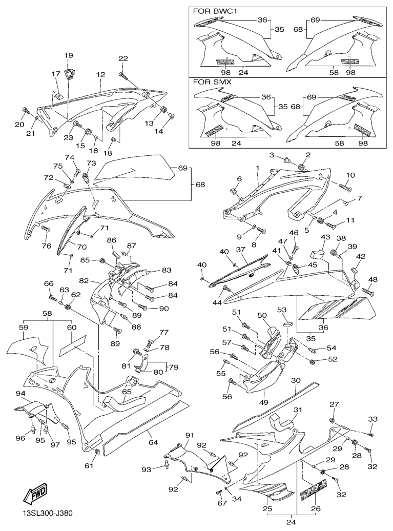 Cowling 2, YZF-R6 2010, YZF-R6, 600 cc, Yamaha -varaosa luettelot
