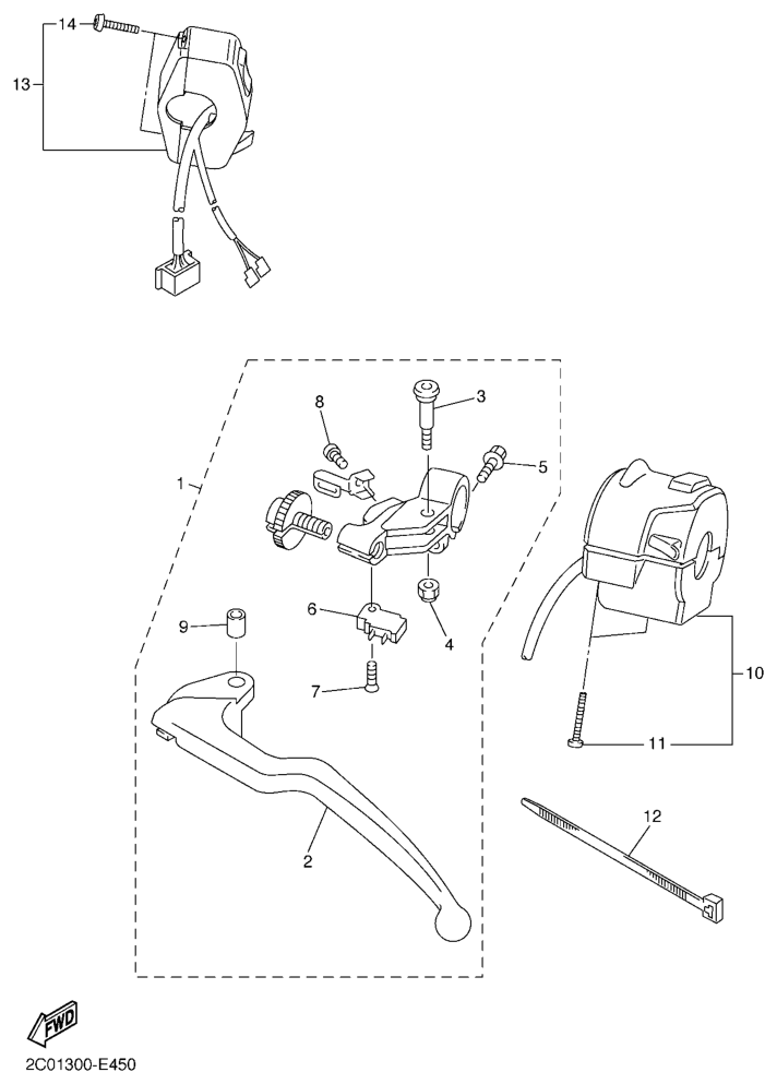 Ohjaustangon katkaisija ja vivut, YZF-R6 2010, YZF-R6, 600 cc, Yamaha -varaosa luettelot