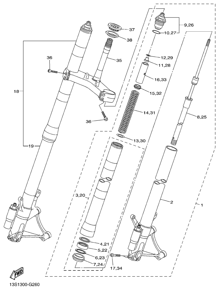 Etuhaarukka, YZF-R6 2014, YZF-R6, 600 cc, Yamaha -varaosa luettelot
