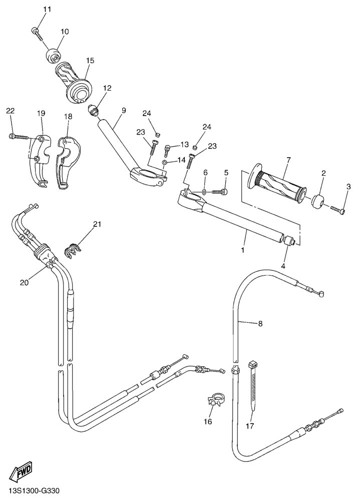 Ohjaustanko ja vaijerit, YZF-R6 2014, YZF-R6, 600 cc, Yamaha -varaosa luettelot