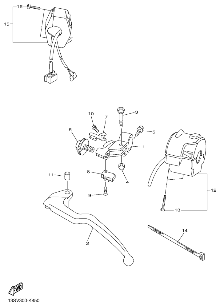 Ohjaustangon katkaisija ja vivut, YZF-R6 2015, YZF-R6, 600 cc, Yamaha -varaosa luettelot