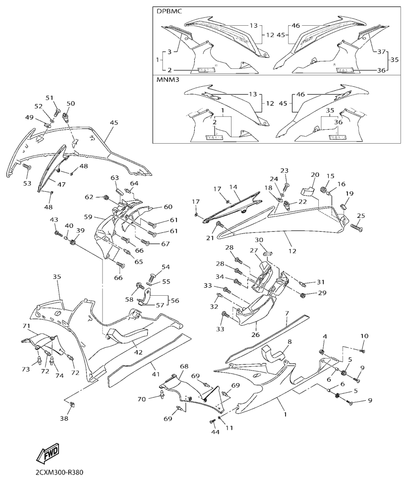 Cowling 2, YZF-R6 2016, YZF-R6, 600 cc, Yamaha -varaosa luettelot