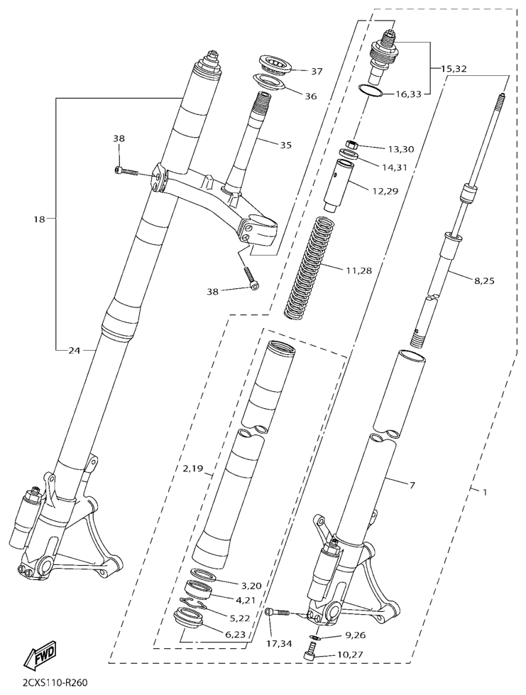 Etuhaarukka, YZF-R6 2016, YZF-R6, 600 cc, Yamaha -varaosa luettelot
