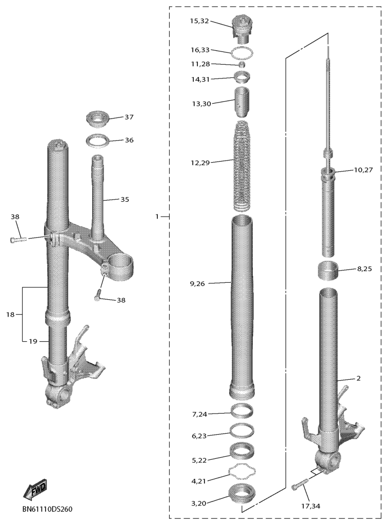 Etuhaarukka, YZF-R6 2019, YZF-R6, 600 cc, Yamaha -varaosa luettelot