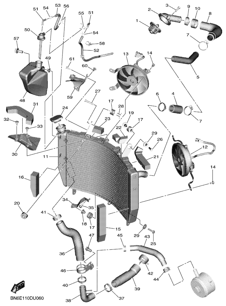 Jäähdytin ja letkut, YZF-R6 2019, YZF-R6, 600 cc, Yamaha -varaosa luettelot