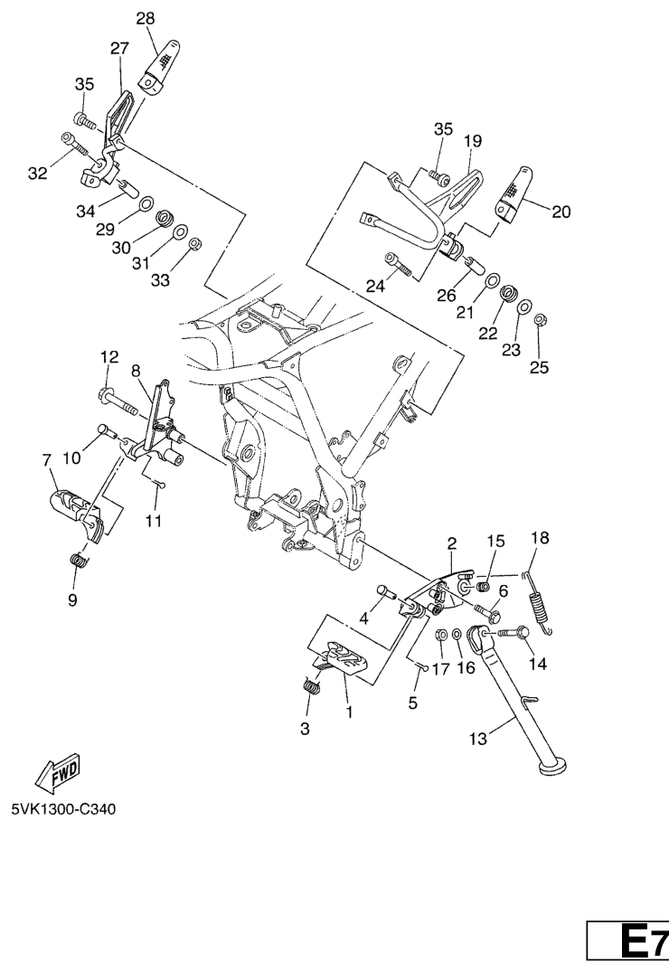 Seisontatuki ja jalkatapit, XT660R 2006, XT660, 660 cc, Yamaha -varaosa luettelot