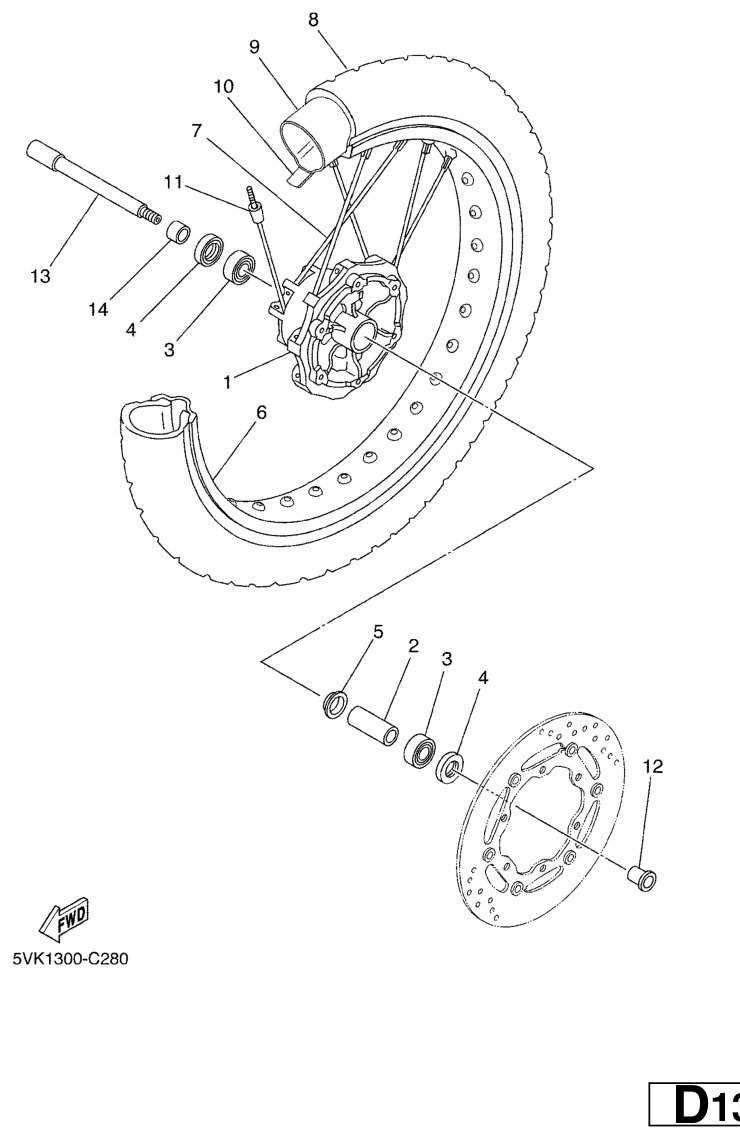 Etupyörä, XT660R 2007, XT660, 660 cc, Yamaha -varaosa luettelot