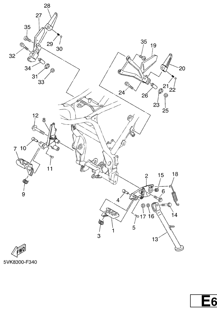 Seisontatuki ja jalkatapit, XT660R 2007, XT660, 660 cc, Yamaha -varaosa luettelot