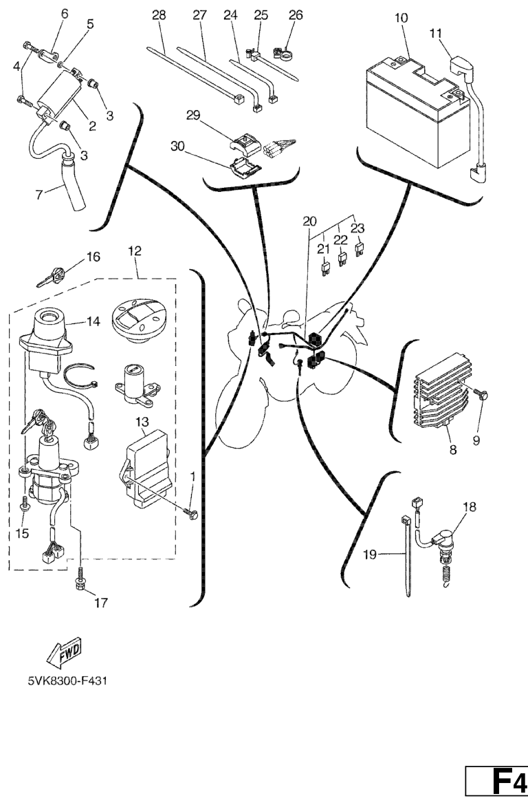 Sähköjestelmä 1, XT660R 2008, XT660, 660 cc, Yamaha -varaosa luettelot