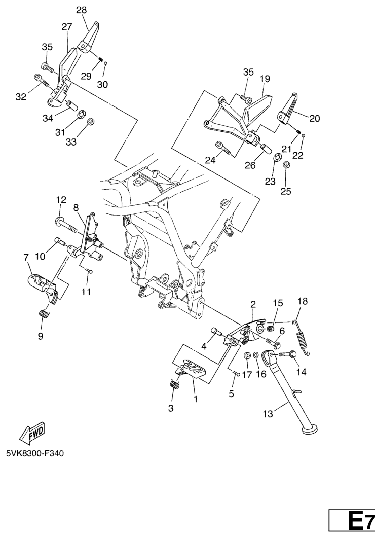 Seisontatuki ja jalkatapit, XT660R 2008, XT660, 660 cc, Yamaha -varaosa luettelot
