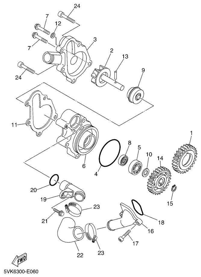 Vesipumppu, XT660R 2010, XT660, 660 cc, Yamaha -varaosa luettelot