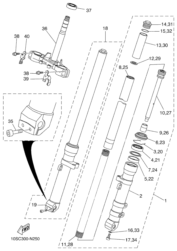 Etuhaarukka, XT660R 2014, XT660, 660 cc, Yamaha -varaosa luettelot