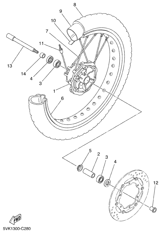 Etupyörä, XT660R 2014, XT660, 660 cc, Yamaha -varaosa luettelot