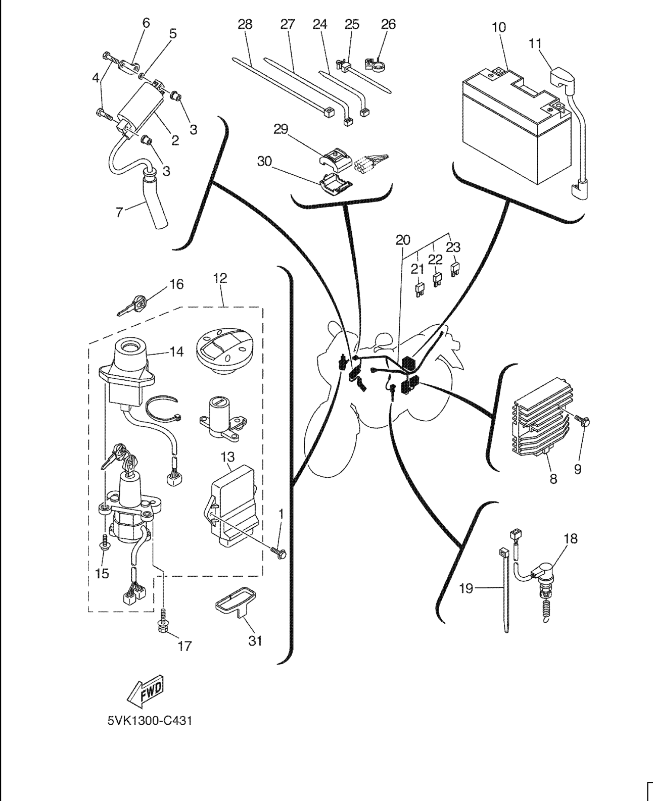 Sähköjestelmä 1, XT660X 2004, XT660, 660 cc, Yamaha -varaosa luettelot