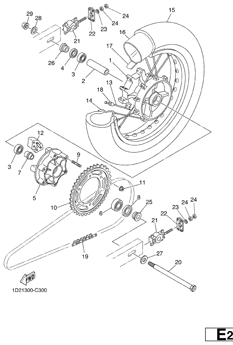 Takapyörä, XT660X 2005, XT660, 660 cc, Yamaha -varaosa luettelot