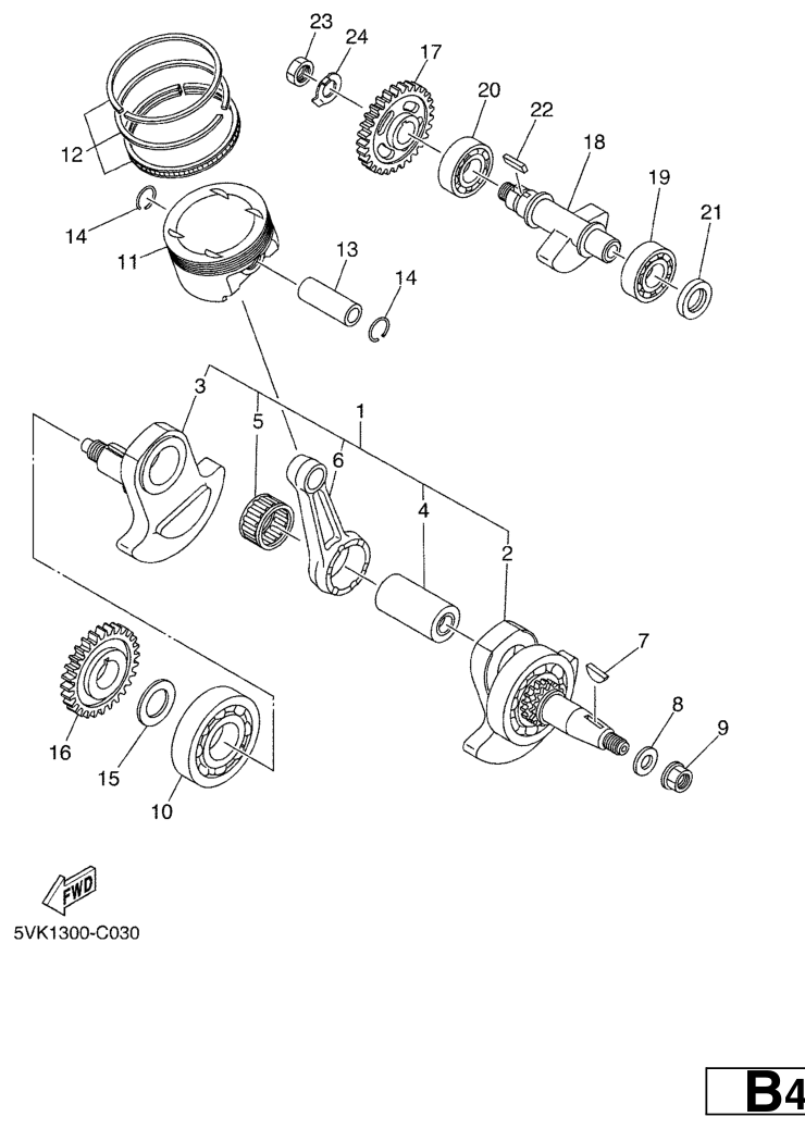 Kampiakseli ja mäntä, XT660X 2006, XT660, 660 cc, Yamaha -varaosa luettelot