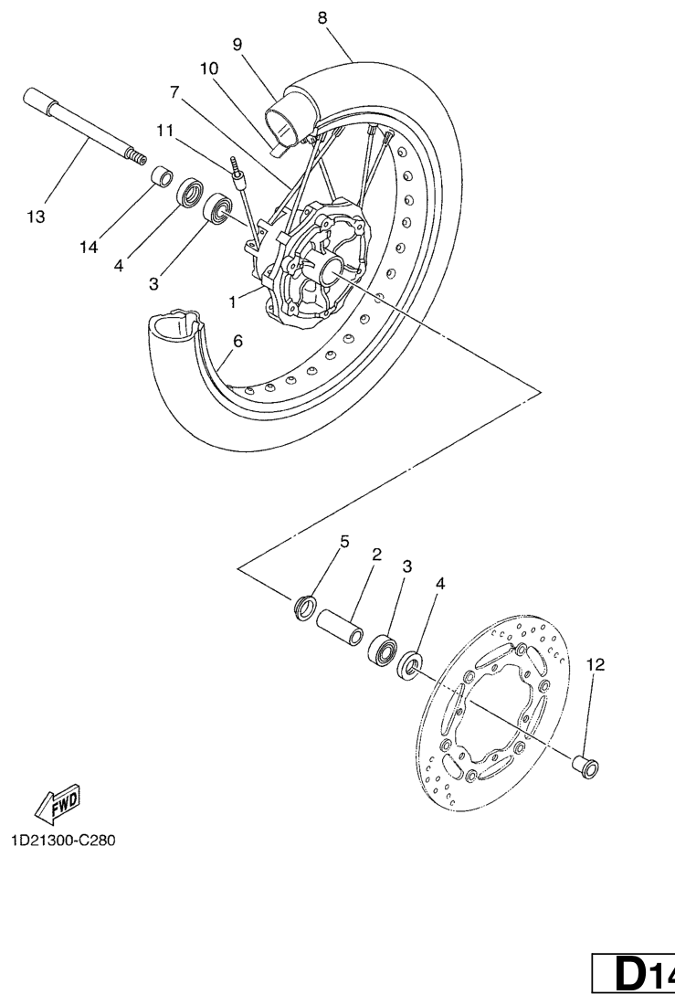 Etupyörä, XT660X 2007, XT660, 660 cc, Yamaha -varaosa luettelot