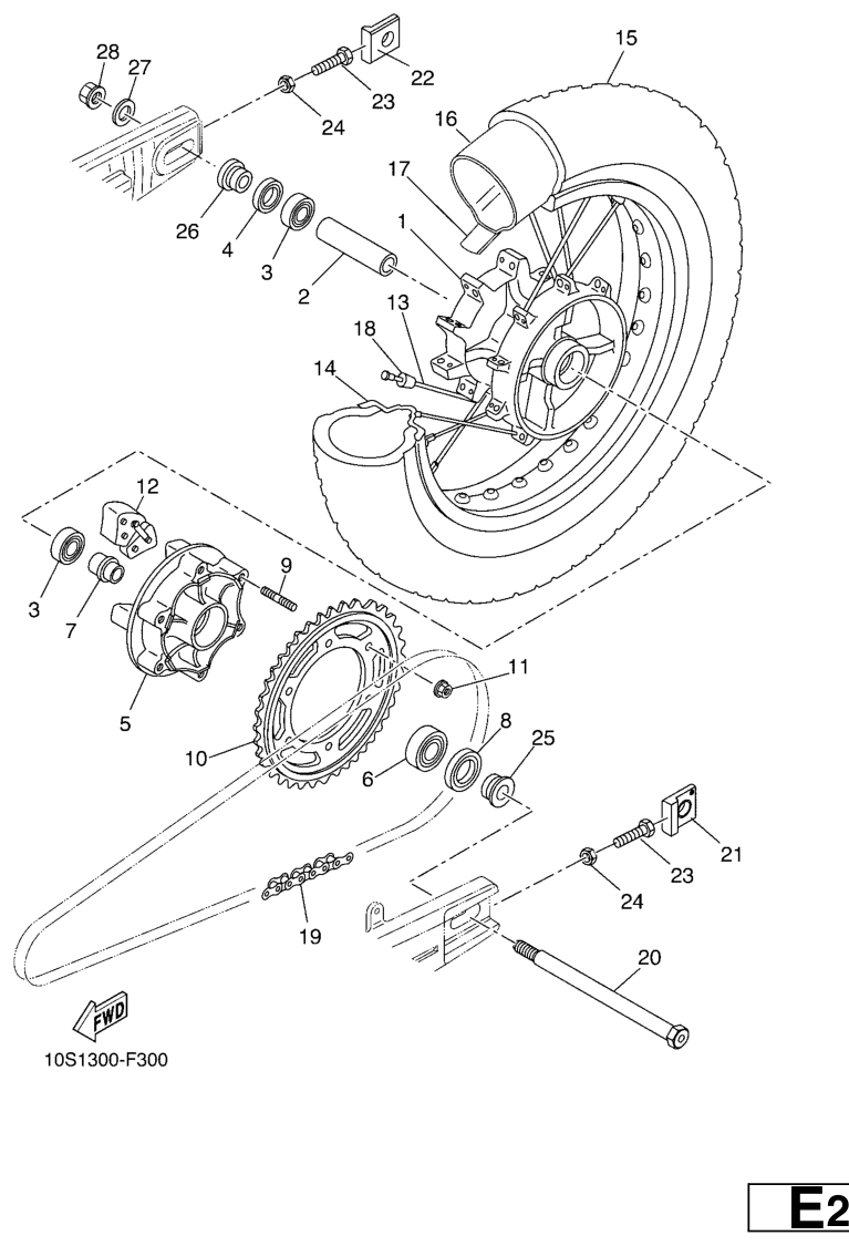 Takapyörä, XT660X 2008, XT660, 660 cc, Yamaha -varaosa luettelot