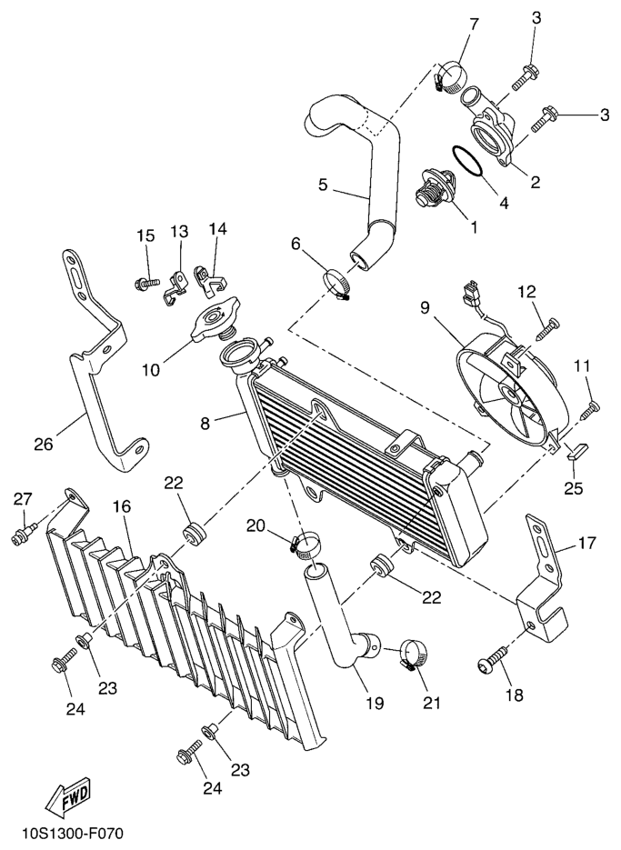 Jäähdytin ja letkut, XT660X 2009, XT660, 660 cc, Yamaha -varaosa luettelot