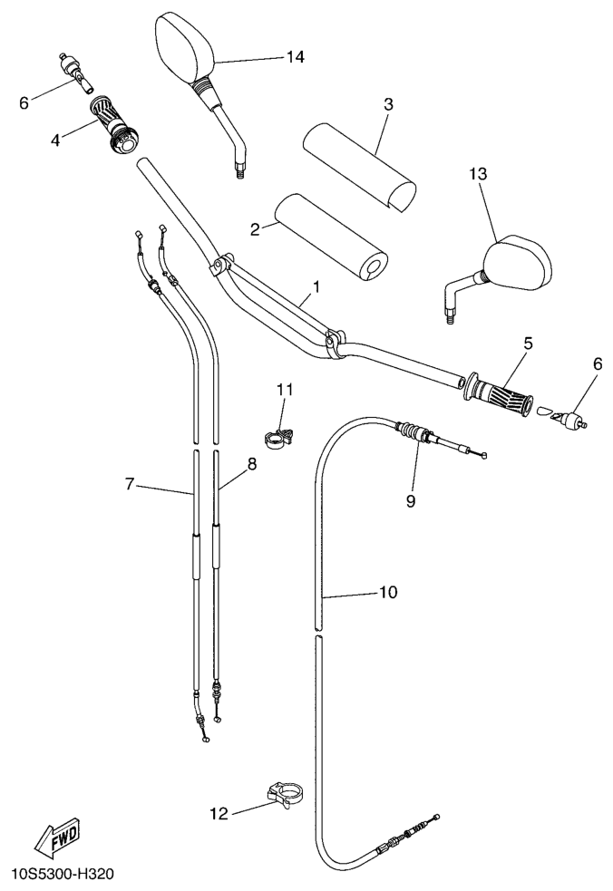 Ohjaustanko ja vaijerit, XT660X 2011, XT660, 660 cc, Yamaha -varaosa luettelot