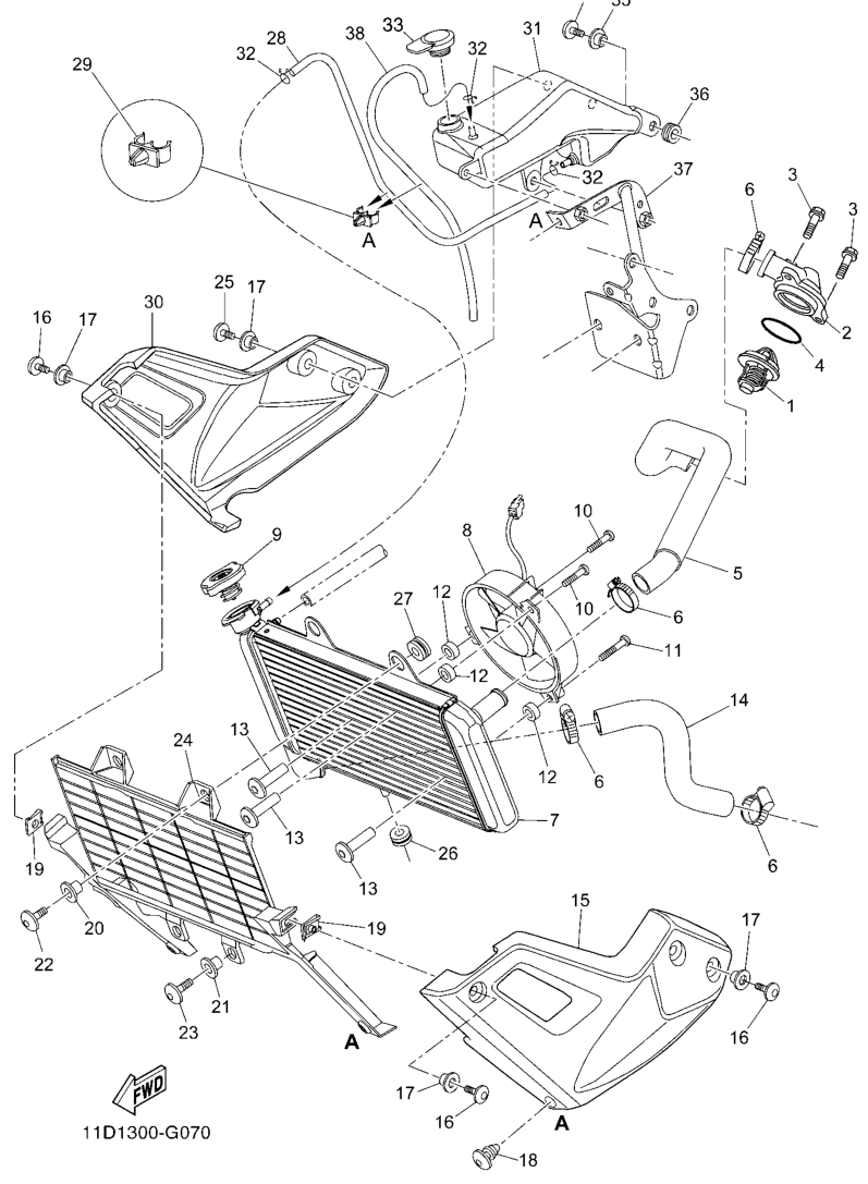 Jäähdytin ja letkut, XT660Z 2008, XT660, 660 cc, Yamaha -varaosa luettelot