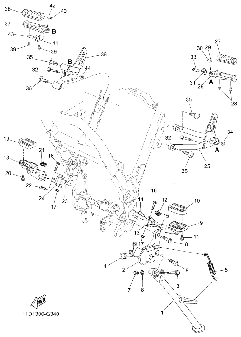 Seisontatuki ja jalkatapit, XT660Z 2009, XT660, 660 cc, Yamaha -varaosa luettelot