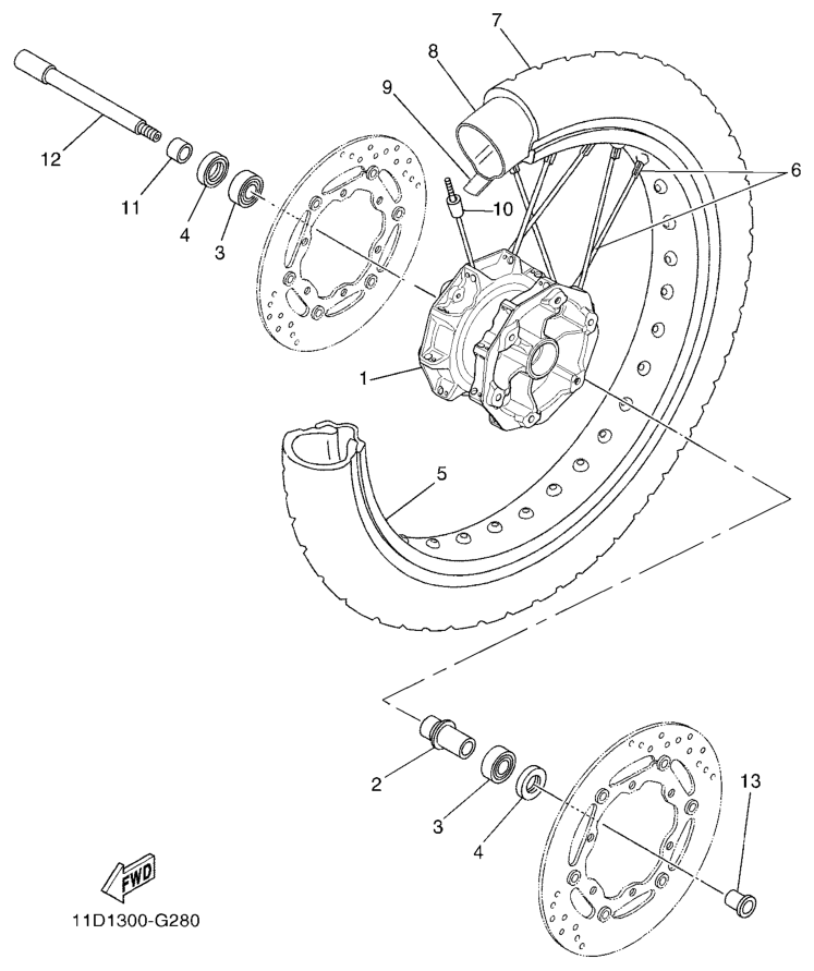 Etupyörä, XT660Z 2010, XT660, 660 cc, Yamaha -varaosa luettelot